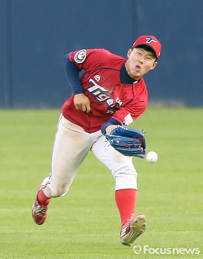 (서울=포커스뉴스) 2일 서울 잠실구장에서 열린 2016 프로야구 KIA-LG 경기 2회말 1사 2,3루에서 KIA 중견수 최원준이 LG 유강남의 타구를 잡다 떨어트리고 있다.
