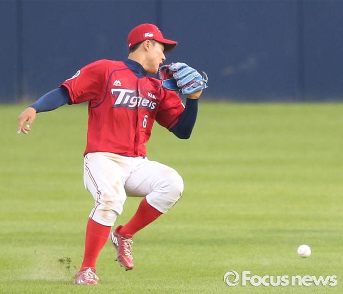 (서울=포커스뉴스) 2일 서울 잠실구장에서 열린 2016 프로야구 KIA-LG 경기 2회말 1사 2,3루에서 KIA 중견수 최원준이 LG 유강남의 타구를 잡다 떨어트리고 있다.
