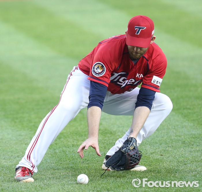 (서울=포커스뉴스) 2일 서울 잠실구장에서 열린 2016 프로야구 KIA-LG 경기 2회말 무사 1,2루에서 KIA 투수 지크가 LG 손주인의 희생번트 타구를 잡고 있다.