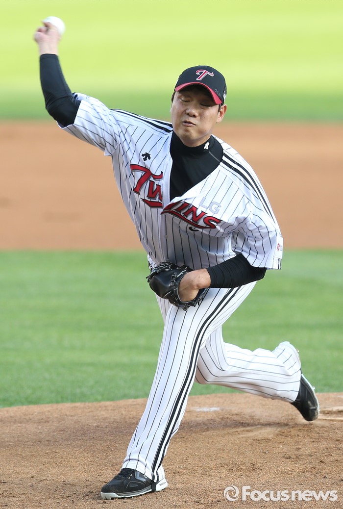 (서울=포커스뉴스) 2일 서울 잠실구장에서 열린 2016 프로야구 KIA-LG 경기에서 1회초 LG 선발투수 류제국이 투구하고 있다.