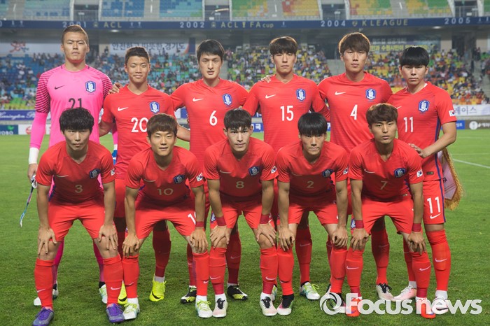 (수원=포커스뉴스) 2일 오후 경기 수원월드컵경기장에서 열린 2016 4개국 올림픽국가대표 축구대회 대한민국과 나이지리아의 경기에서 대한민국 대표팀이 기념촬영을 하고 있다.