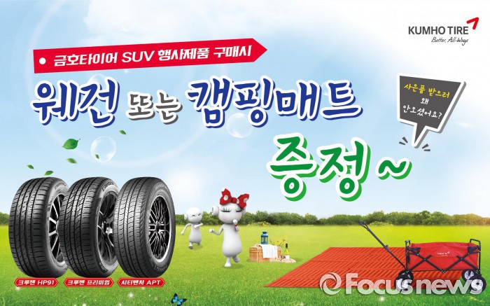 (서울=포커스뉴스) 금호타이어가 SUV 차량용 타이어 구매 고객을 대상으로 3일부터 다음달 2일까지 캠핑용품 증정 이벤트를 진행한다.