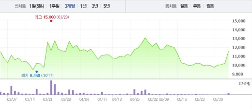 유니더스는 3일 오전 9시30분 현재 전일 대비 12.75%(1300원) 상승한 1만1500원에 거래되고 있다.