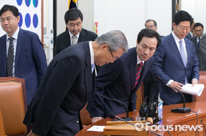 (서울=포커스뉴스) 3일 오전 서울 여의도 국회에서 열린 더불어민주당 비상대책위원회의에 김종인 비대위 대표와 우상호 원내대표 등 비대위원들이 참석하고 있다.