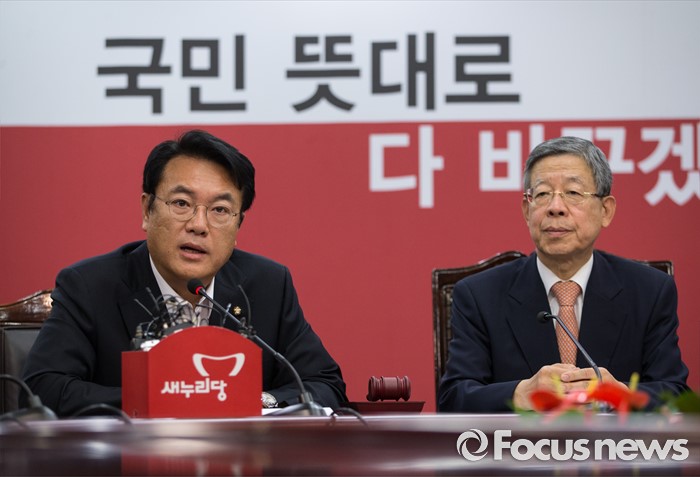 (서울=포커스뉴스) 정진석 새누리당 원내대표가 3일 오전 서울 여의도 새누리당 당사에서 열린 비상대책위원회의에 참석해 발언하고 있다.