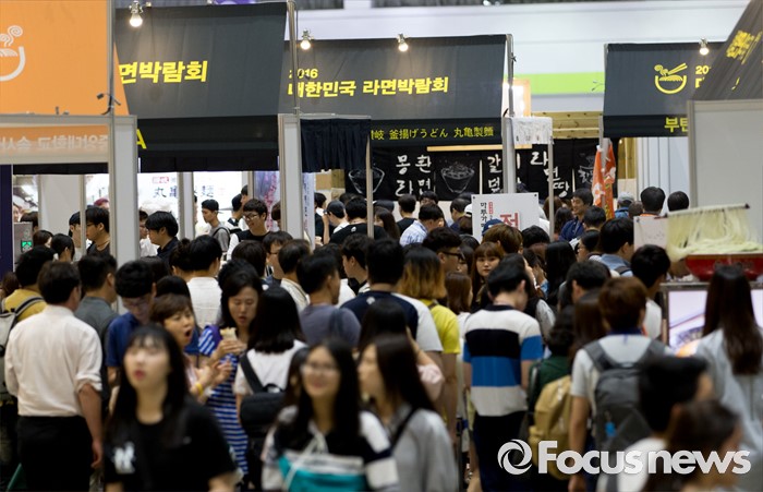 (서울=포커스뉴스) 3일 오후 서울 강남구 코엑스에서 2016 대한민국 라면박람회를 찾은 시민들이 라면을 시식하고 있다.