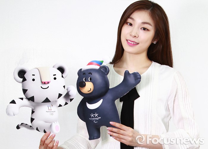 | △ 김연아, 평창동계올림픽 마스코트와 함께 |