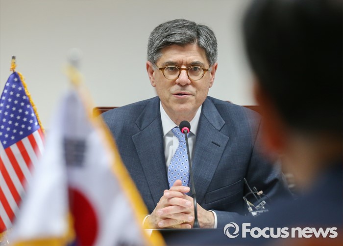 (서울=포커스뉴스) 3일 오후 종로구 정부서울청사에서 열린 한·미 재무장관회의에 참석한 제이콥 루(Jacob Lew) 미국 재무부 장관이 발언하고 있다.