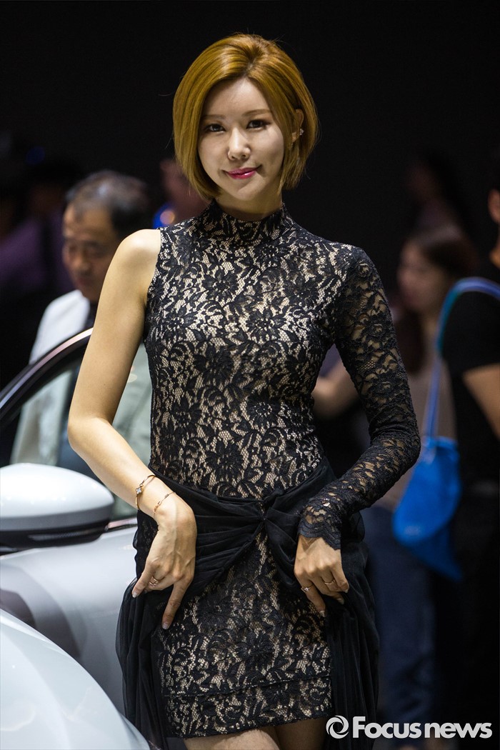 (부산=포커스뉴스) 3일 오후 부산 해운대구 벡스코에서 '2016 부산 국제모터쇼'가 공식 개막한 가운데 레이싱걸이 관람객들을 향해 포즈를 취하고 있다. 이번 국제모터쇼는 오는 12일 까지 계속 된다.