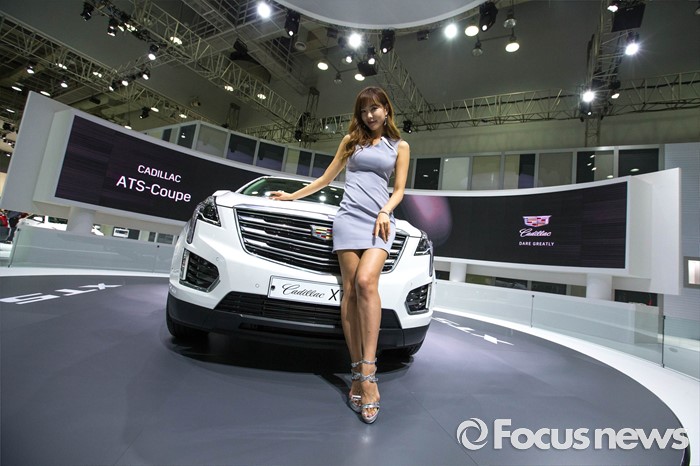 (부산=포커스뉴스) 3일 오후 부산 해운대구 벡스코에서 '2016 부산 국제모터쇼'가 공식 개막한 가운데 레이싱걸이 관람객들을 향해 포즈를 취하고 있다. 이번 국제모터쇼는 오는 12일 까지 계속 된다.