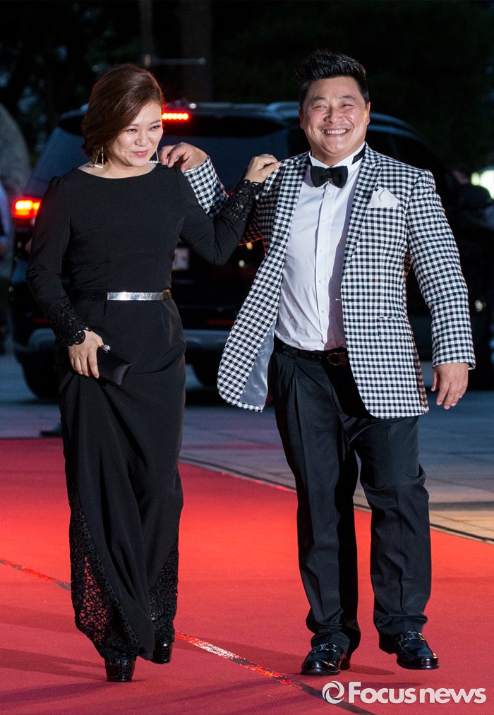 (서울=포커스뉴스) 3일 오후 서울 동대문구 경희대학교 평화의전당에서 열린 '2016 백상예술대상'에 참석한 개그맨 김숙, 윤정수가 레드카펫을 밟고 있다.