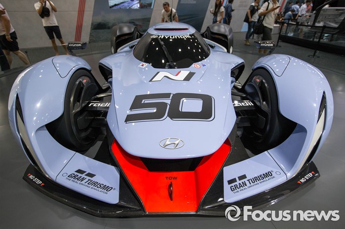 (부산=포커스뉴스) 3일 오후 부산 해운대구에 위치한 벡스코에서 열린 '2016 부산국제모터쇼'에 현대의 순수 친환경 고성능차 'N 2025 비전 그란 투리스모' 가 전시되어 있다.