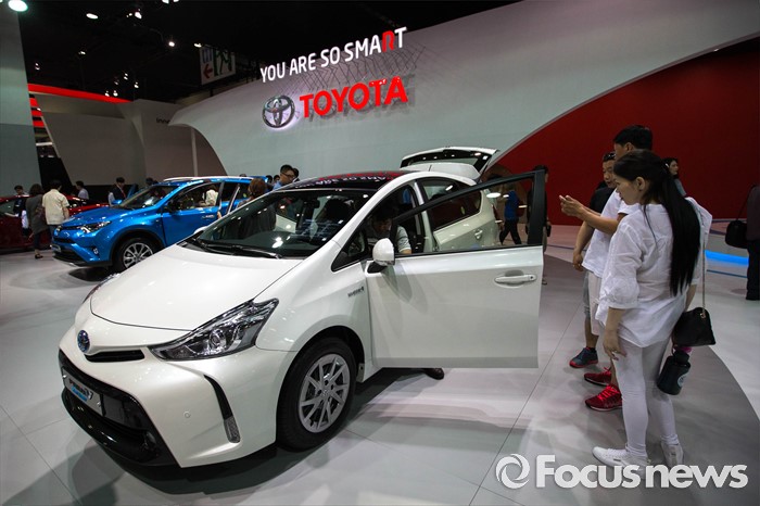 (부산=포커스뉴스) 3일 오후 부산 해운대구에 위치한 벡스코에서 열린 '2016 부산국제모터쇼'에 토요타 '프리우스 V' 차량이 전시되어 있다.