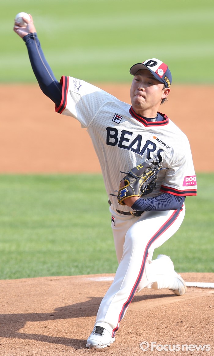 (서울=포커스뉴스) 5일 서울 잠실구장에서 열린 2016프로야구 SK-두산 경기에서 1회초 두산 선발투수 안규영이 투구하고 있다.