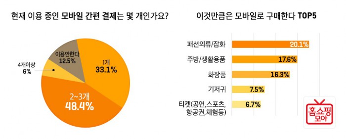 6일 모바일 홈쇼핑 포털 앱 '홈쇼핑모아'를 운영하는 버즈니(공동대표 남상협, 김성국)가 3040 여성 이용자 2987명을 대상으로 진행한 설문조사 결과 간편결제 설치 후 '모바일로 주문을 많이 하게 된다'는 의견이 75.5%였고, 나머지 24.5%는 '큰 변화가 없다'고 답했다.