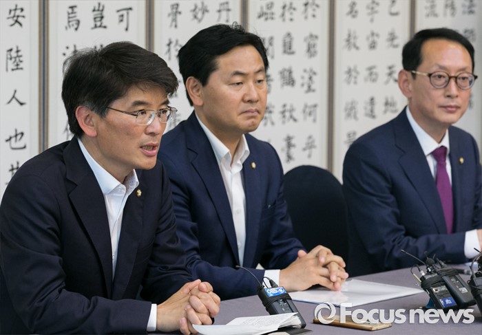 (서울=포커스뉴스) 6일 오후 서울 여의도 국회 귀빈식당에서 열린 20대 국회 원구성 협상 등을 위한 회동에 참석한 김도읍(오른쪽) 새누리당 원내수석부대표, 박완주(왼쪽) 더불어민주당 원내수석부대표, 김관영 국민의당 원내수석부대표가 취재진을 향해 발언하고 있다.