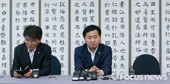(서울=포커스뉴스) 6일 오후 서울 여의도 국회 귀빈식당에서 열린 20대 국회 원구성 협상 등을 위한 회동에 참석한 박완주(왼쪽) 더불어민주당 원내수석부대표, 김관영 국민의당 원내수석부대표가 김도읍 새누리당 원내수석부대표를 기다리며 생각에 잠겨 있다.