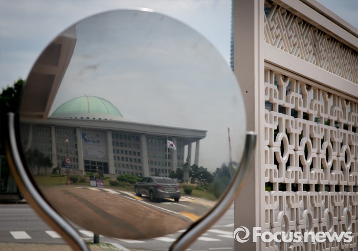 (서울=포커스뉴스) 20대 국회 원구성 법정 시한을 하루 앞둔 6일 오후 서울 여의도 국회 정문에 세워진 안내표지판에 본청 모습이 보이고 있다.