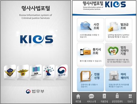 KICS 앱 아이폰 사용을 원하는 사람들은 앱스토에서 '형사사법포털'을 검색해 해당 앱을 내려받아 설치한 뒤 본인 확인 절차를 거쳐 이용하면 된다.