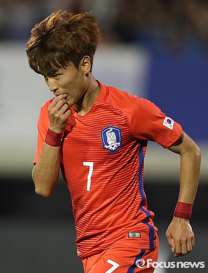 (부천=포커스뉴스) 6일 오후 경기 부천종합운동장에서 열린 2016 4개국 올림픽국가대표 축구대회 대한민국과 덴마크의 경기에서 대한민국 문창진이 선제골을 성공시킨 뒤 세레모니를 하고 있다.
