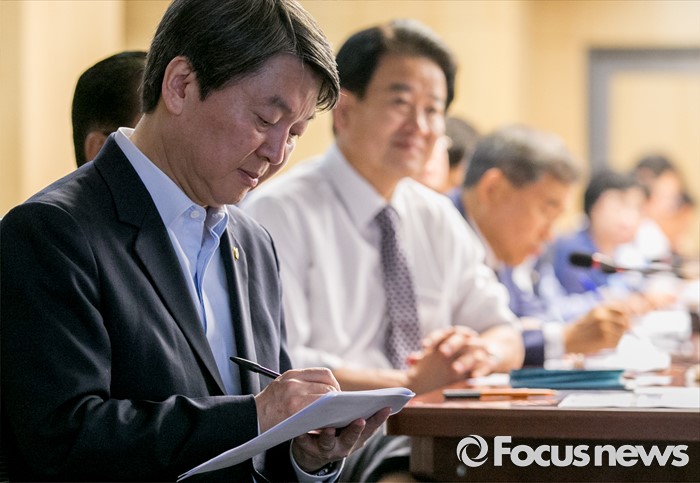 (서울=포커스뉴스) 7일 오전 서울 여의도 국회 의원회관에서 열린 국민의당 11차 정책역량강화 집중워크숍에 참석한 안철수(오른쪽부터) 상임공동대표, 정동영 의원 등 의원들이 오세정 의원의 강연을 듣고 있다.