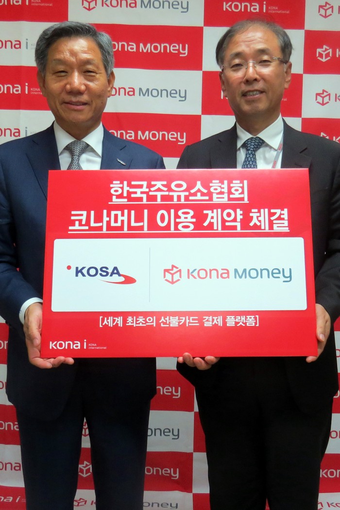 (서울=포커스뉴스) 코나아이는 한국주유소협회와 '코나머니' 이용 계약을 체결했다고 7일 밝혔다. '코나머니'는 코나아이가 세계 최초로 개발한 개방형 선불카드 결제 플랫폼으로, 신용카드와 비교해 결제 수수료가 낮다는 장점이 있다.