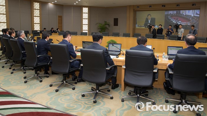 (세종=포커스뉴스) 황교안 국무총리가 7일 오전 세종시 정부세종청사 국무회의장에서 열린 서울-세종 영상 국무회의에서 모두발언을 하고 있다.
