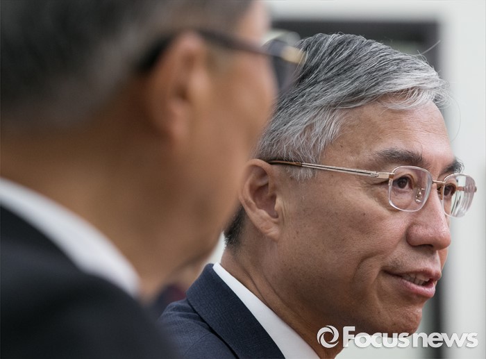 (서울=포커스뉴스) 김종인(왼쪽) 더불어민주당 비대위 대표가 7일 오전 서울 여의도 국회를 방문한 추궈홍(邱國洪) 주한중국대사와 면담을 하고 있다.