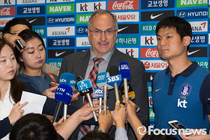 | △ 취재진 질문 답하는 슈틸리케 |