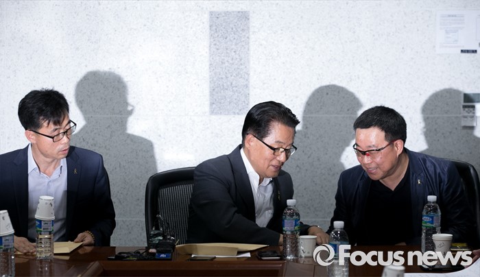 (서울=포커스뉴스) 박지원(가운데) 국민의당 원내대표가 7일 오후 서울 여의도 국회 의원회관에서 세월호 특별법 개정안과 관련 전명선(왼쪽) 4·16가족협의회 운영위원장, 유경근 집행위원장 등 관계자들과 면담을 하고 있다.
