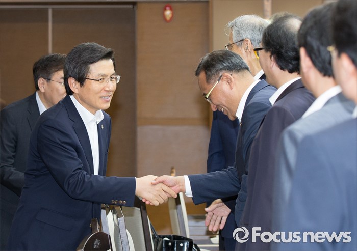 (세종=포커스뉴스) 황교안 국무총리가 7일 오후 세종시 정부세종청사 1동 대회의실에서 열린 자원봉사진흥위원회에서 참석자들과 악수를 하고 있다.