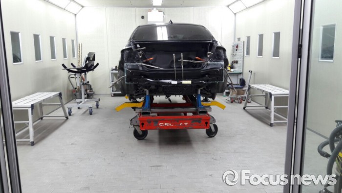 지하 2층에 위치한 판금도장 작업장에서는 '본딩&리벳팅'이라고 불리는 BMW만의 차별화 된 판금작업 소개가 있었다. 프레임이 파손된 차량의 구조물을 잇는 과정에 있어 용접으로 때우는 외부정비소의 일반적인 판금방식과 연결제와 접착제를 이용해 매끄럽게 판금 공정을 진행하는 BMW 방식의 차이점을 비교 제시하며, 본딩&리벳팅 방식의 우수성을 강조했다.