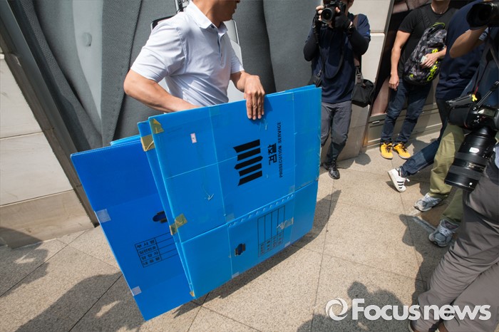 | △ 롯데호텔 압수수색, 박스 가지고 가는 검찰 |