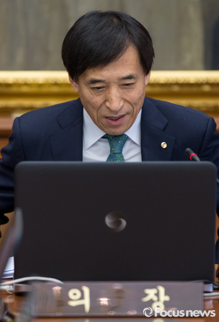 (서울=포커스뉴스) 9일 오전 서울 중구 남대문로 한국은행 본관에서 열린 금융통화위원회 본회의에 참석한 이주열 한국은행 총재가 착석하고 있다.