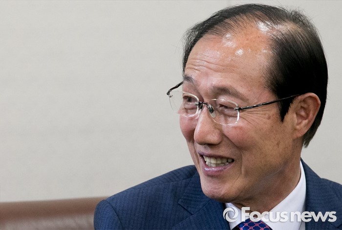 (서울=포커스뉴스) 10일 오후 서울 여의도 새누리당사를 방문한 이원종 대통령비서실장이 김희옥 새누리당 혁신비대위원장과 면담을 하고 있다.