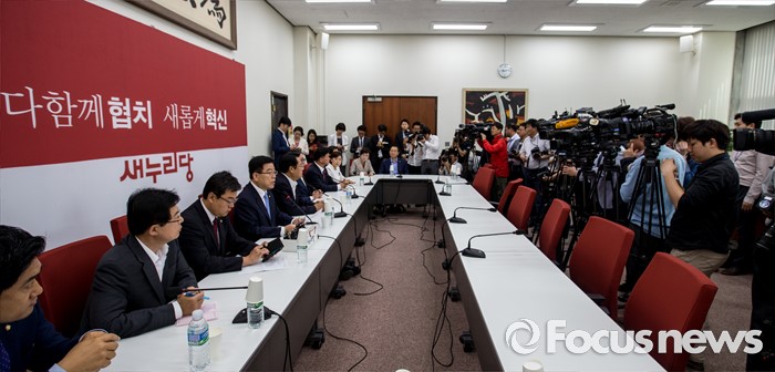 (서울=포커스뉴스) 김광림 새누리당 정책위의장이 8일 오전 서울 여의도 국회에서 열린 원내대책회의에 참석해 모두발언 하고 있다.