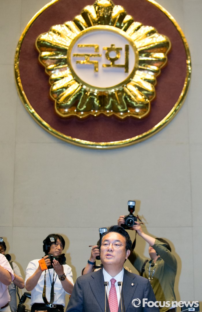 (서울=포커스뉴스) 9일 오전 서울 여의도 국회에서 국회 부의장 후보 선출을 위해 열린 새누리당 의원총회에 참석한 정진석 원내대표가 모두발언을 하고 있다.
