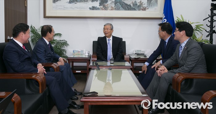 (서울=포커스뉴스) 김종인 더불어민주당 비대위 대표가 10일 오후 서울 여의도 국회를 방문한 이원종 대통령비서실장, 김재원 청와대 정무수석과 면담을 하고 있다. 왼쪽부터 김재원 청와대 정무수석, 이원종 대통령비서실장, 김종인 더민주 비대위 대표, 박광온 수석대변인, 박용진 대표비서실장.