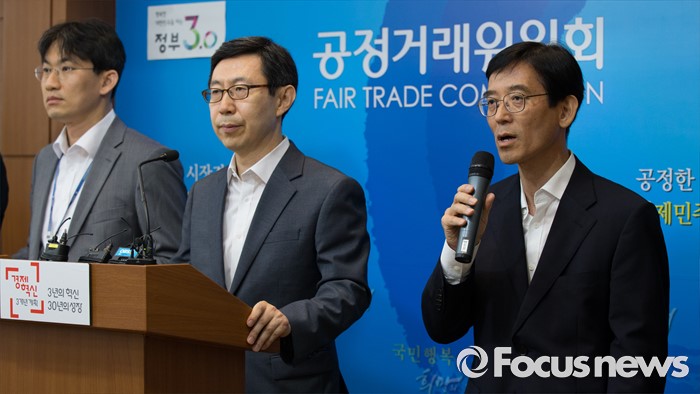 (세종=포커스뉴스) 김병근 중소기업청 중소기업정책국장이 8일 오전 세종시 정부세종청사 공정위 기자실에서 대기업집단 지정제도 개선방안에 대한 브리핑 중에 취재진의 질문에 답변 하고 있다. 오른쪽부터 김병근 중소기업청 중소기업정책국장, 신영선 사무총장, 이병원 기획재정부 기업환경과장.