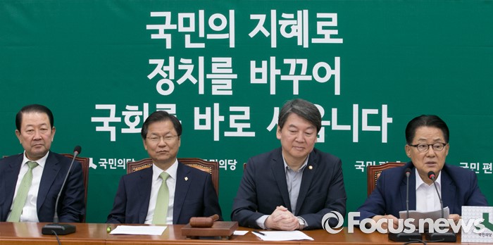 (서울=포커스뉴스) 8일 오전 서울 여의도 국회에서 열린 국민의당 최고위원회의에 참석한 박지원 원내대표가 모두발언을 하고 있다. 왼쪽부터 박주선 최고위원, 천정배 공동대표, 안철수 상임공동대표, 박 원내대표.