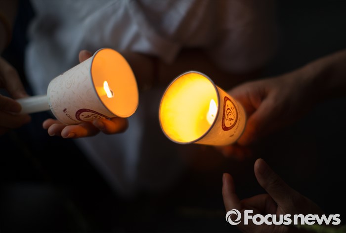 (서울=포커스뉴스) 지난달 28일 서울 지하철 2호선 구의역에서 스크린도어 정비 도중 숨진 김 모씨의 발인을 하루 앞둔 8일 오후 서울 광진구 구의역 인근에서 시민들이 김 모씨를 추모하며 촛불을 나누고 있다.
