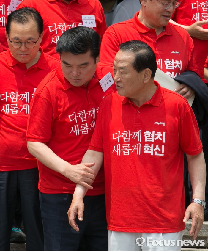 (과천=포커스뉴스) 10일 오전 경기도 과천 국가공무원인재개발원에서 열린 2016 새누리당 정책워크숍에 참석한 서청원 전 최고위원과 원유철 전 원내대표가 기념촬영에 앞서 대화하고 있다.