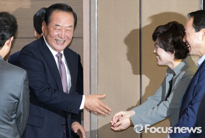 (서울=포커스뉴스) 9일 오후 서울 여의도 국회에서 국회 부의장 후보 선출을 위해 열린 새누리당 의원총회에 참석한 서청원(왼쪽) 전 최고위원이 투표를 마친 뒤 의원들과 인사하고 있다.