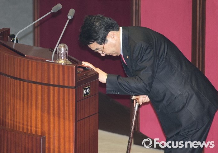 (서울=포커스뉴스) 9일 오후 서울 여의도 국회에서 열린 20대 국회 첫 본회의에서 새누리당 소속 국회 부의장으로 선출된 심재철 의원이 인사하고 있다.