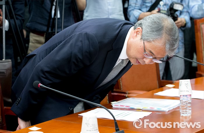 (서울=포커스뉴스) 9일 오전 서울 여의도 국회에서 열린 더불어민주당 가계부채TF, 현황 및 정부대책 보고에 참석한 임종룡 금융위원장이 자리에 앉고 있다.