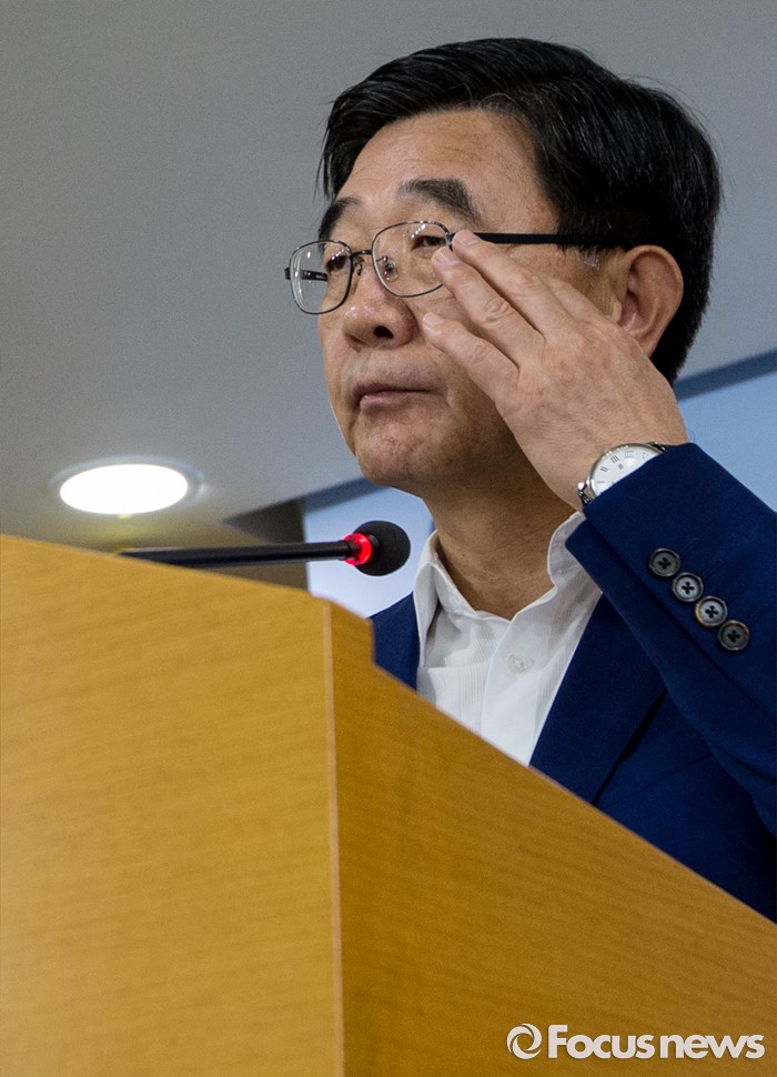 (서울=포커스뉴스) 8일 오전 서울 종로구 정부서울청사에서 이기권 고용노동부 장관이 조선업종 퇴직자 고용보험 적용 및 특별고용지원업종 지정준비 상황에 대해 발표 도중 안경을 고쳐쓰고 있다.