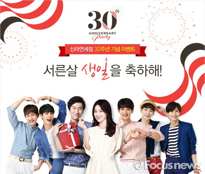 온라인에서는 퀴즈와 손글씨 축하메시지 응모 이벤트 등을 한다. 또한 신라면세점 공식 홈페이지에서는 송혜교, 이광수, 샤이니 등 신라면세점 모델로 활동 중인 스타들의 30주년 생일 축하메시지 영상을 제공한다.신라면세점은 개관 30주년을 맞아 7월18일까지 해외 명품 브랜드 할인행사 등 다양한 프로모션을 벌인다.<사진제공=호텔신라>