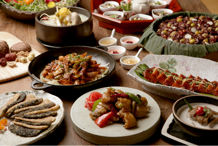 이외에도 더덕에 참기름을 발라 초벌구이한 더덕에 흑임자 소스가 어우러진 더덕구이, 가평잣을 갈아서 직접 도토리 묵과 쑥을 섞은 가평잣 묵사발, 장어초밥, 구운 표고버섯 청국장 무침, 복분자를 곁들인 알로에 순채, 인삼과 오미자 푸딩 등을 즐길 수 있다.