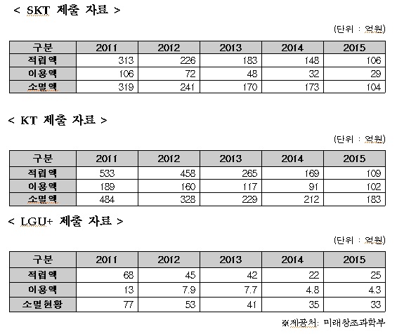 이통사의 지난 5년간 소멸 마일리지는 2682억원(SK텔레콤 1007억원, KT 1436억원, LG유플러스 239억원)에 달했으며, 소멸율은 73%에 달했다.