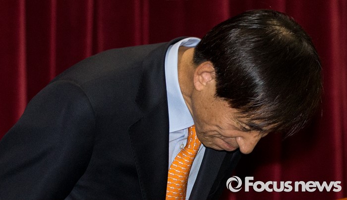 (서울=포커스뉴스) 10일 오전 서울 중구 한국은행 별관에서 열린 '한국은행 창립 66주년 기념식'에 참석한 이주열 한은 총재가 기념사를 마친 후 인사하고 있다.